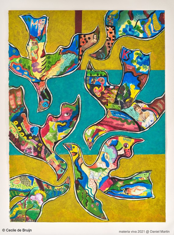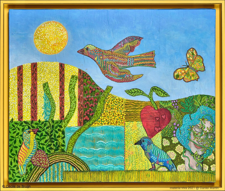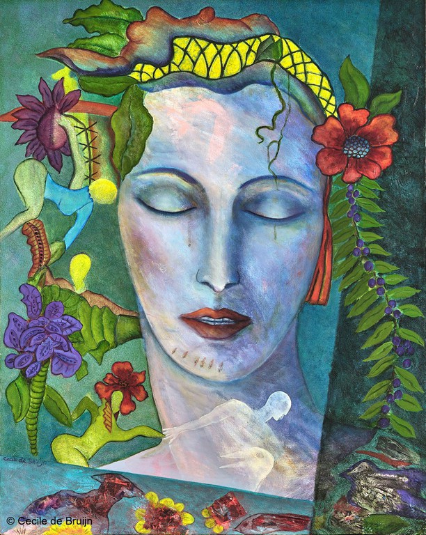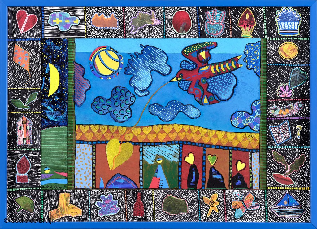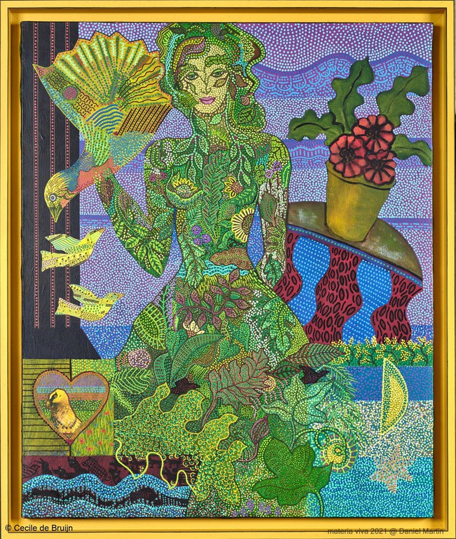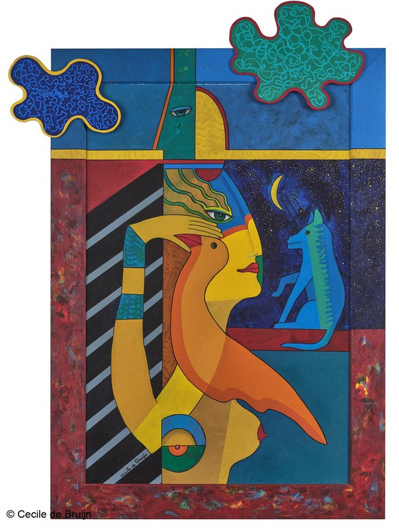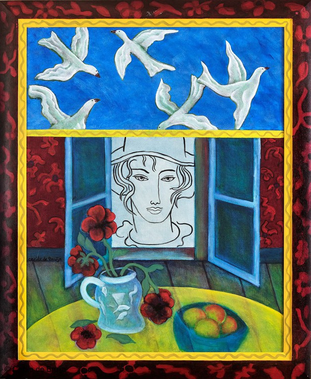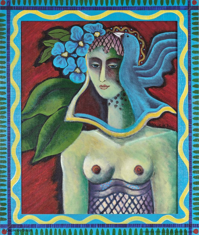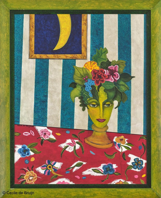 "Les tableaux de Cecile vous emmènent dans son monde intérieur, où foisonne la nature. Ils sont immédiatement accessibles pour le spectateur, et lui offrent une impression d’une positivité et d’une innocence. Ses peintures sont imprégnées de significations cachées, et chaque aspect des surfaces y compris les cadres, est minutieusement travaillé. Ces surfaces sont élaborées de traits complexes et par la superposition des images et des collages.