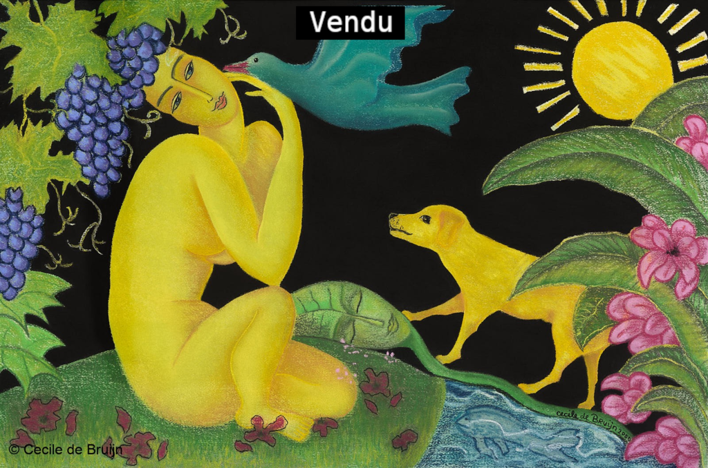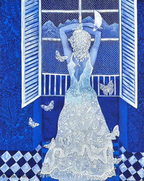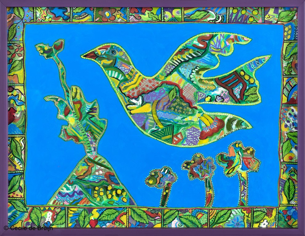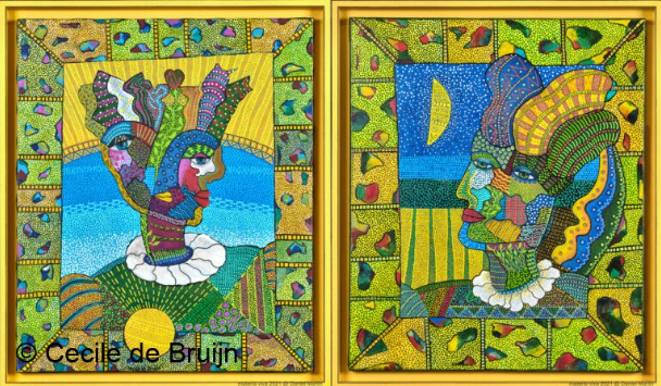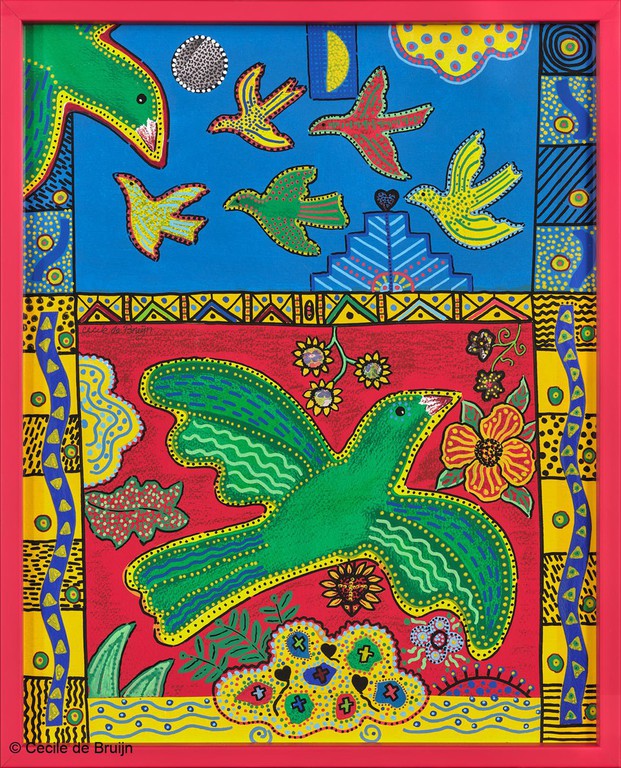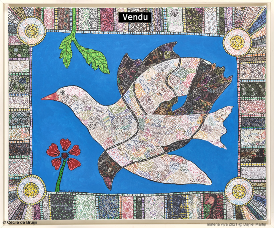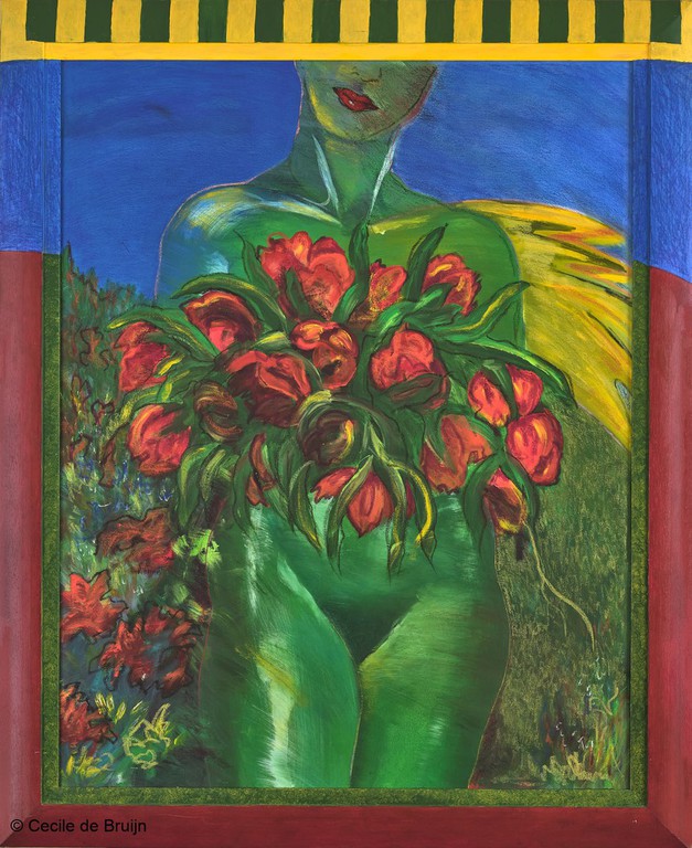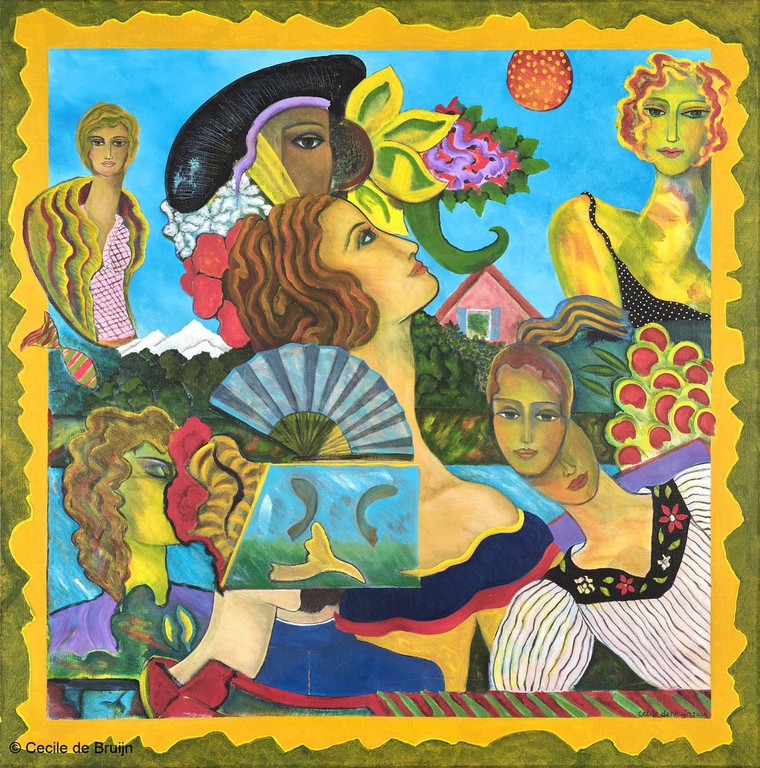 "Les tableaux de Cecile vous emmènent dans son monde intérieur, où foisonne la nature. Ils sont immédiatement accessibles pour le spectateur, et lui offrent une impression d’une positivité et d’une innocence. Ses peintures sont imprégnées de significations cachées, et chaque aspect des surfaces y compris les cadres, est minutieusement travaillé. Ces surfaces sont élaborées de traits complexes et par la superposition des images et des collages.