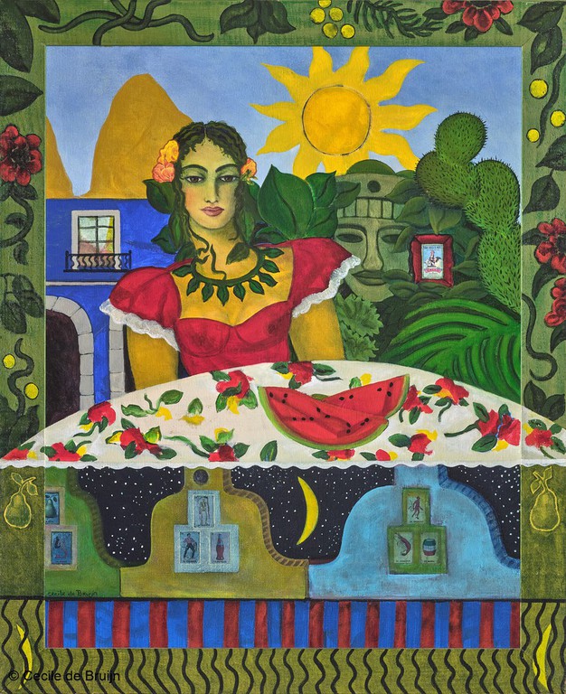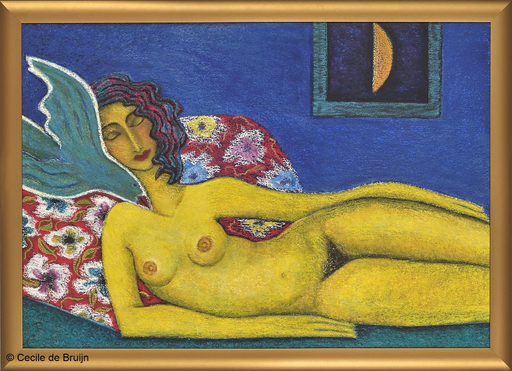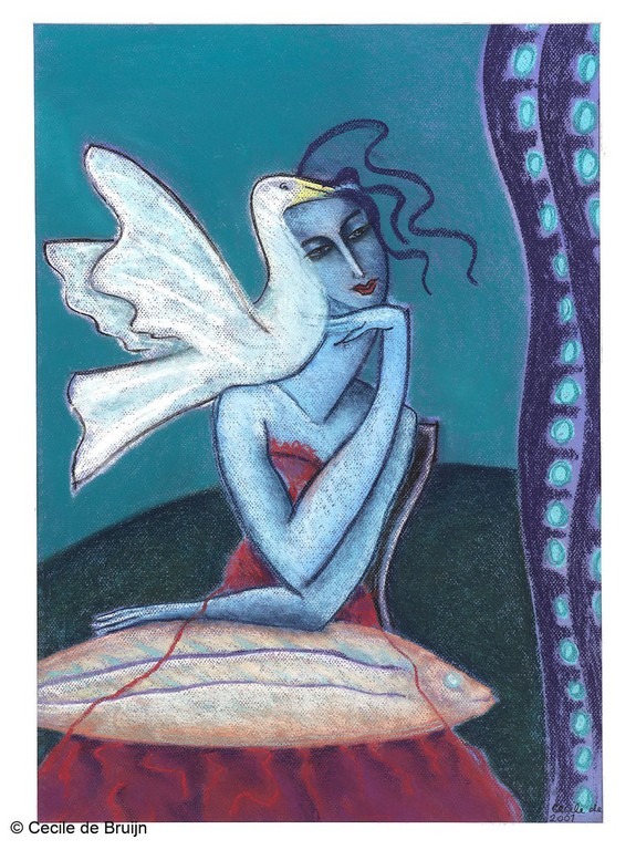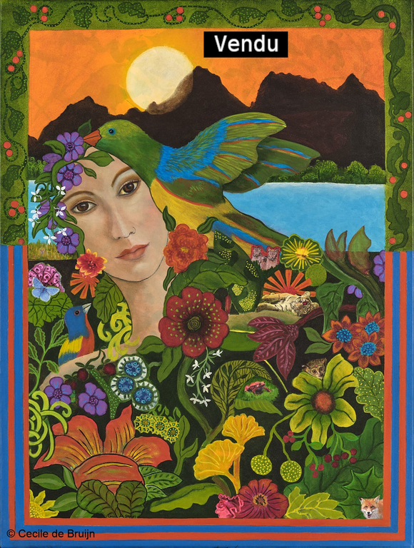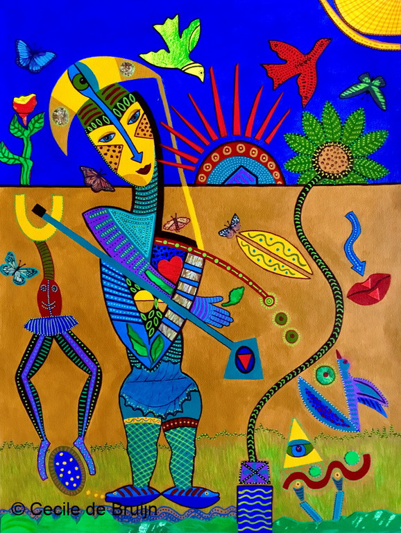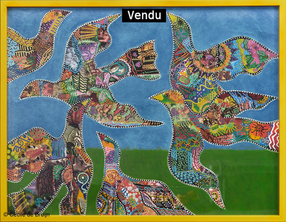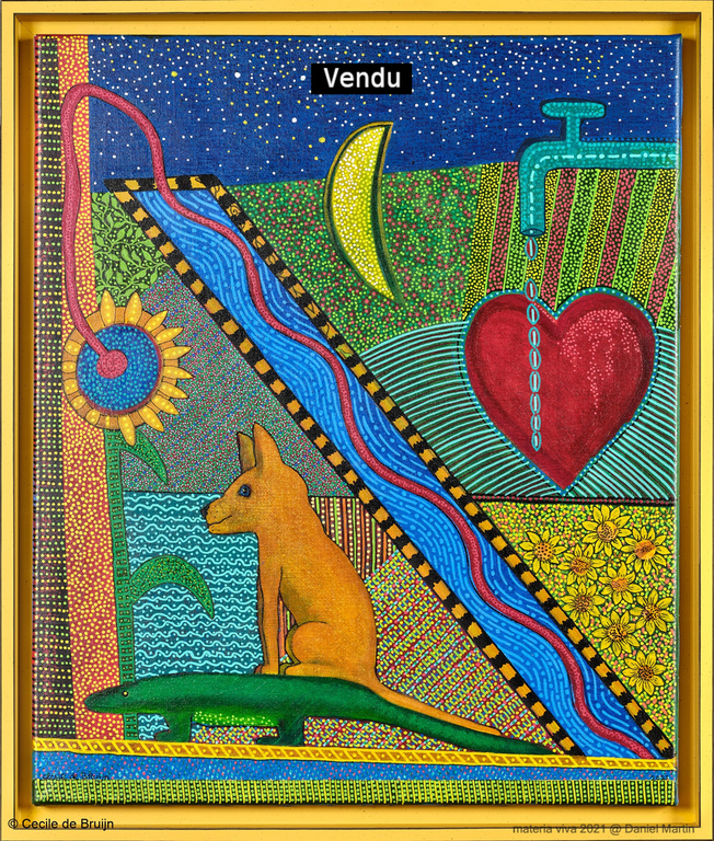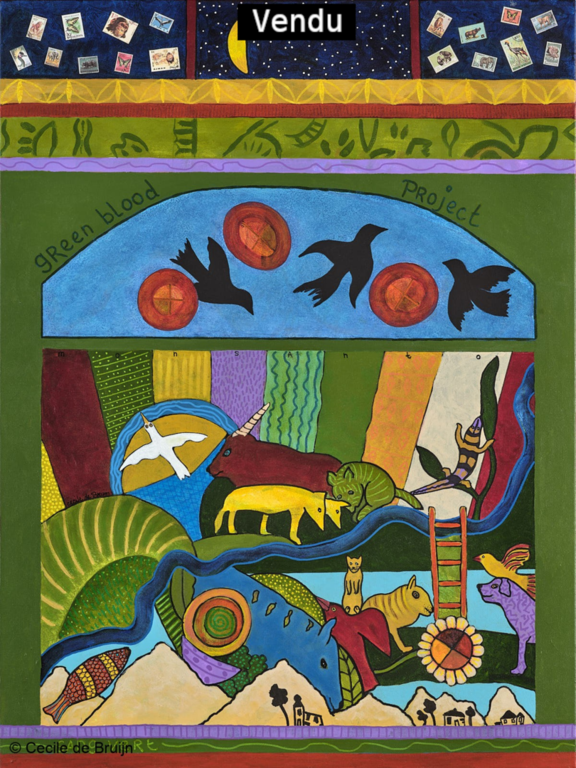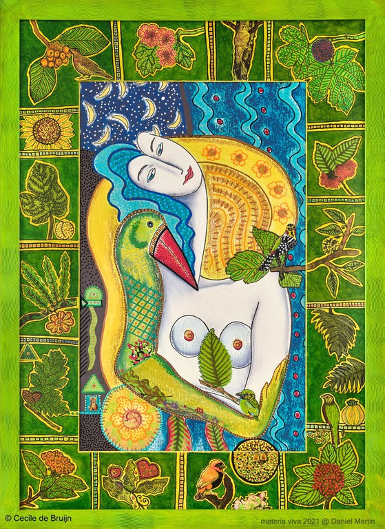 "Les tableaux de Cecile vous emmènent dans son monde intérieur, où foisonne la nature. Ils sont immédiatement accessibles pour le spectateur, et lui offrent une impression d’une positivité et d’une innocence. Ses peintures sont imprégnées de significations cachées, et chaque aspect des surfaces y compris les cadres, est minutieusement travaillé. Ces surfaces sont élaborées de traits complexes et par la superposition des images et des collages.
